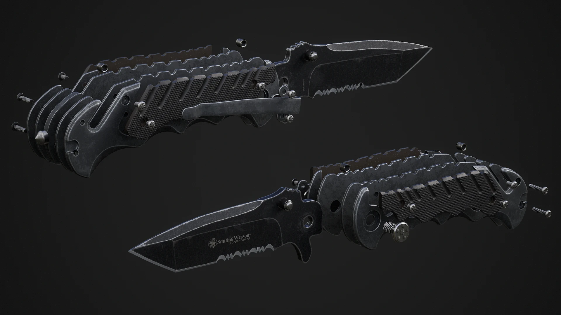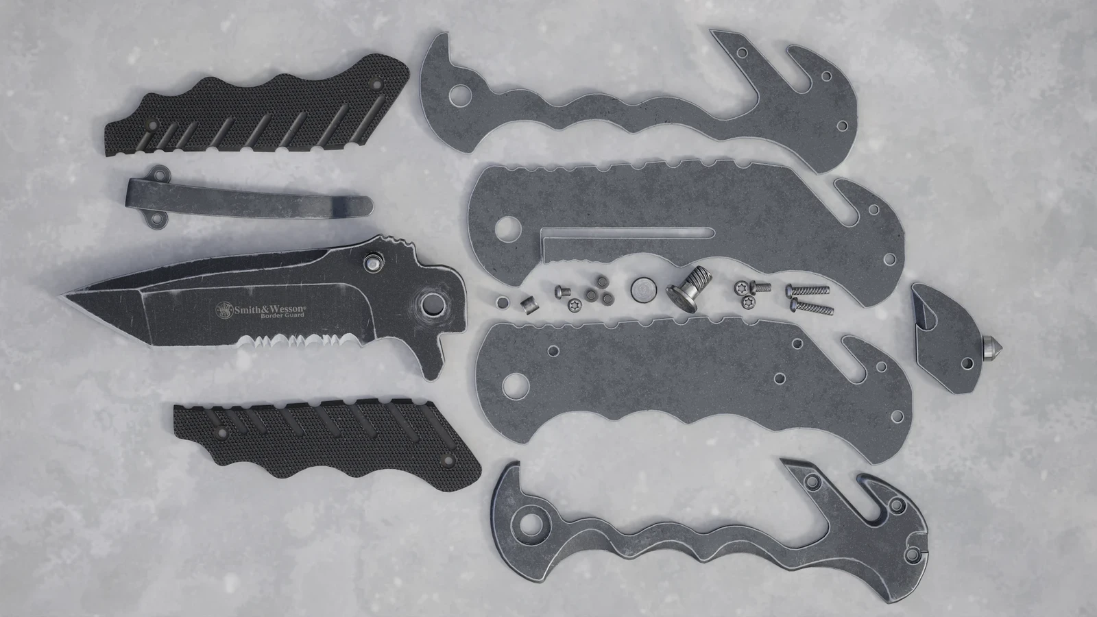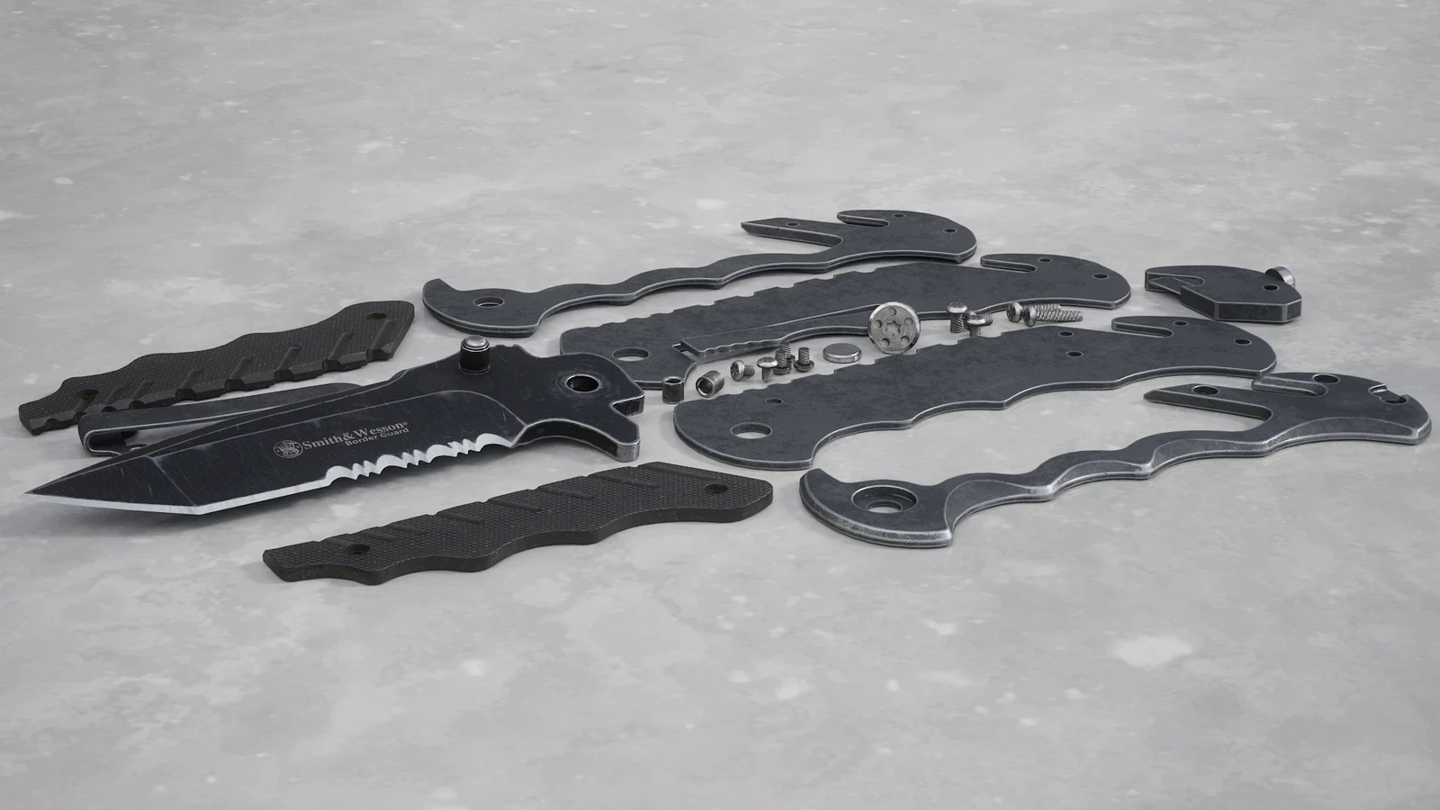 Hard surface and texture study on this cool Smith and Wesson pocket knife.