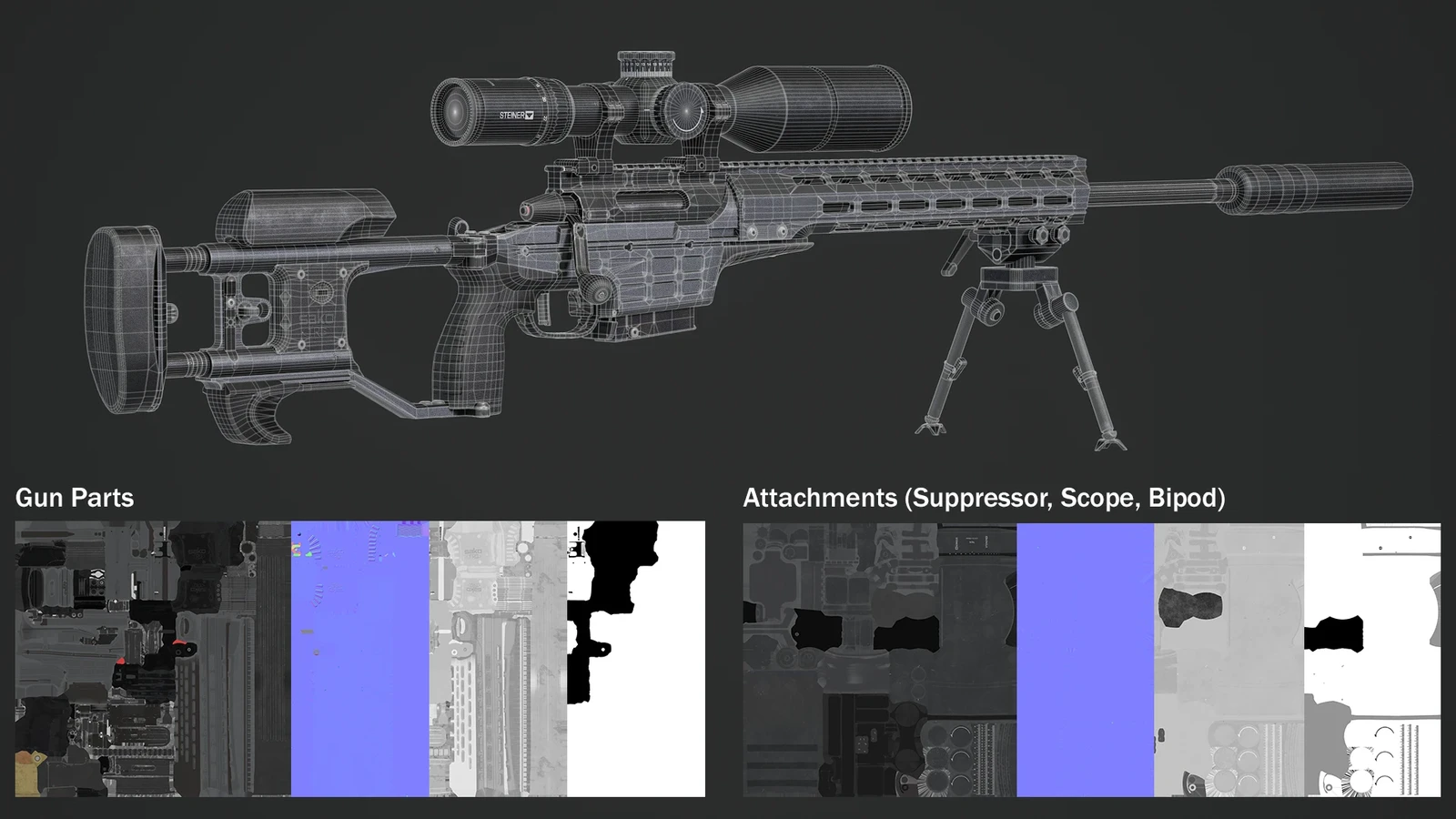 More hard surface weapon modeling and texturing practice. A sniper rifle to add to my 3D weapons armory. All the different metal variations on a single asset made this one a bit of a challenge to texture but I'm really getting the hang of gun metals now. Thanks for checking it out!