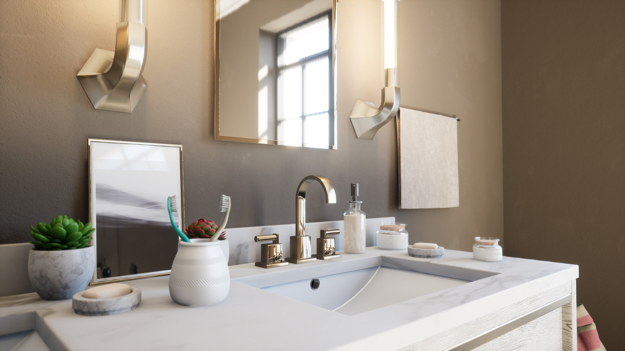 Bathroom vanity concept visualized in Unreal Engine.