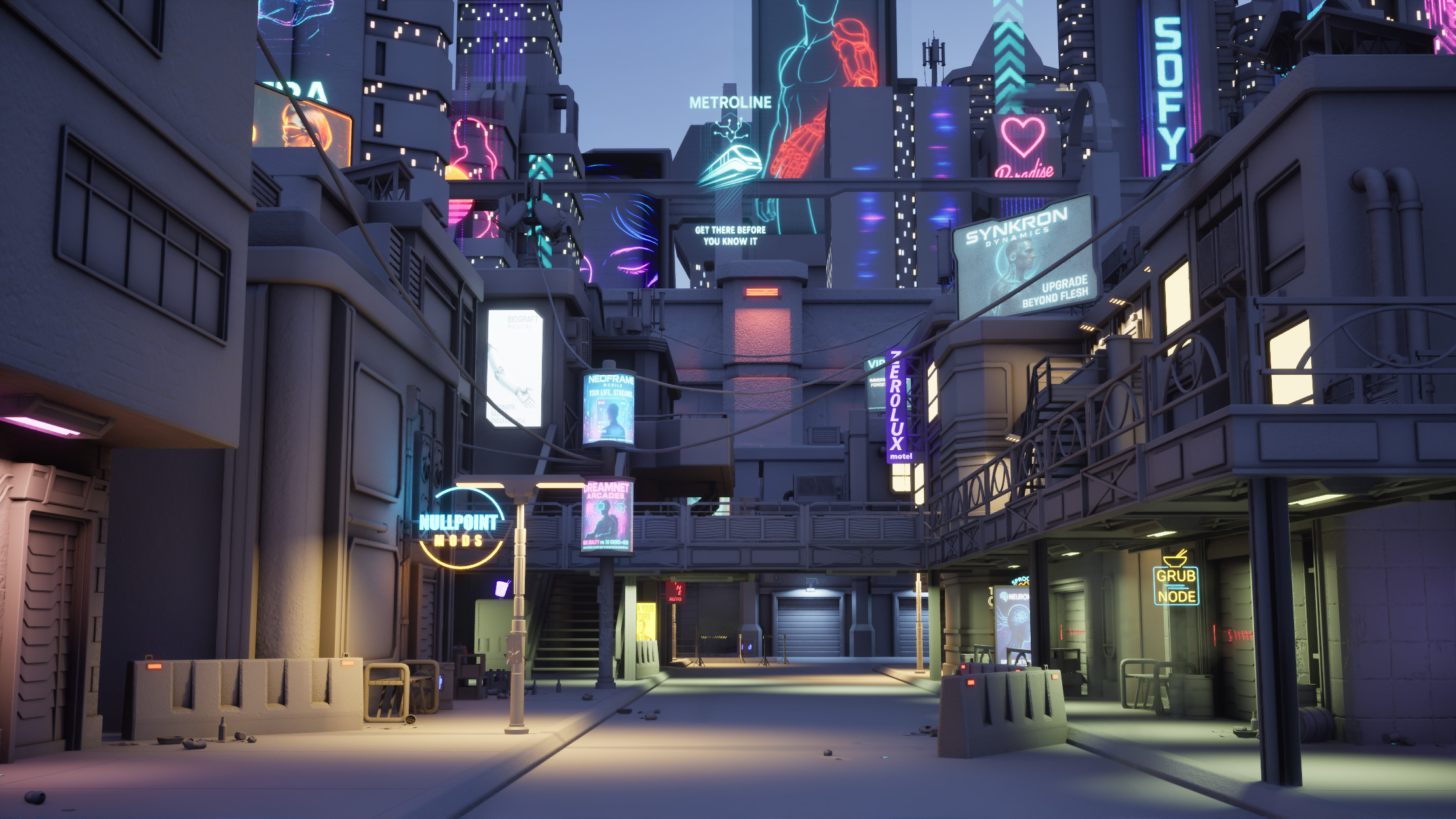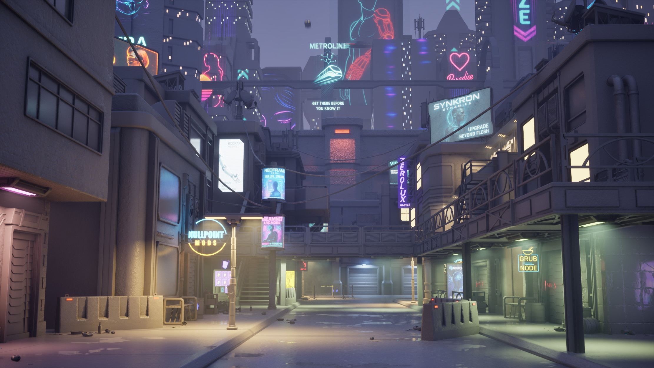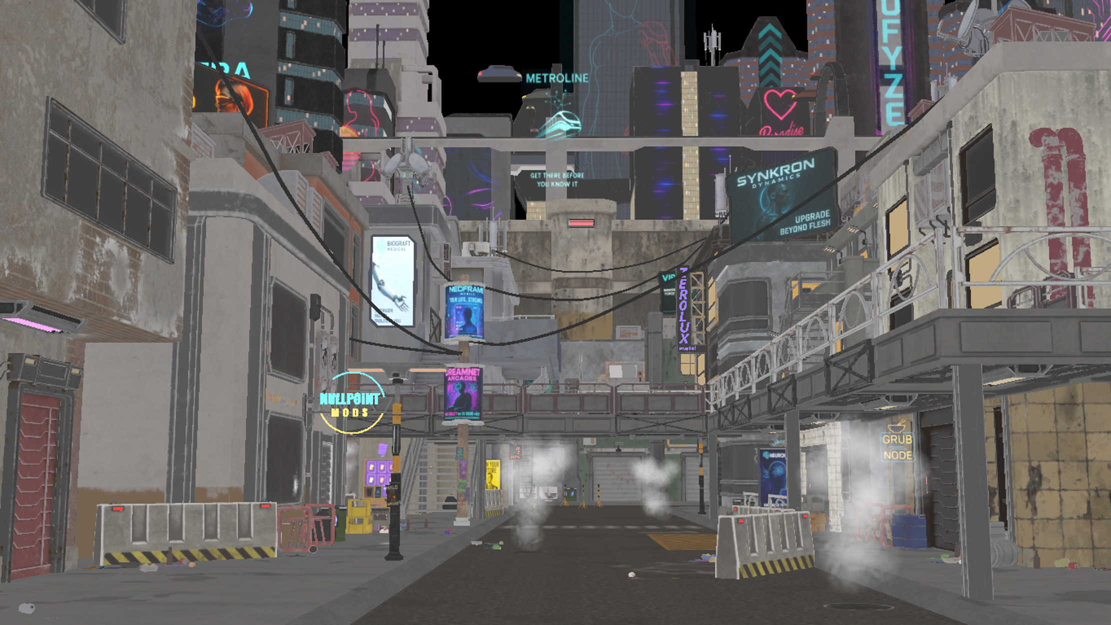 Brass Hollow is a gritty outskirts district on the edge of Kovastra City, cut off from the gleaming corporate skyline by a towering partition wall known as the Divide. Once intended as an industrial expansion zone, the area was abandoned mid-development and has since become a thriving haven for mod dealers, scavvers, and ex-corp ghosts trying to stay off-grid. No one patrols Brass Hollow. No one claims it. But everything here is for sale.